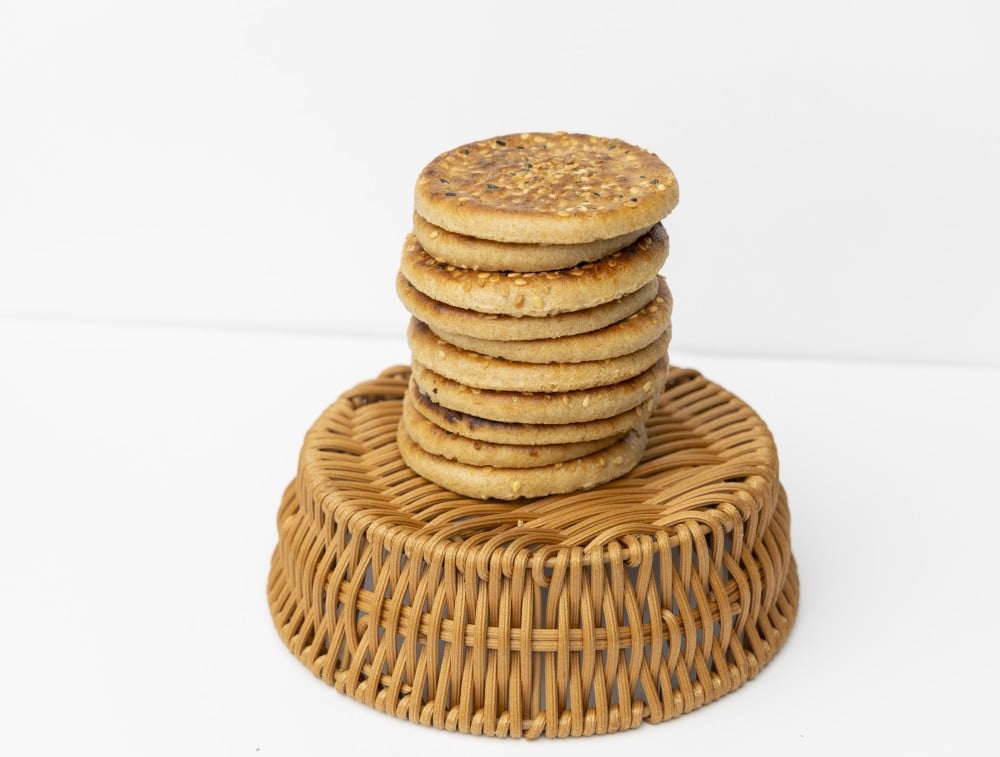 عبارة رقائق حلوة ذات طعم ملف بحشوة التمر ومغطاه بالسمسم وحبة البركة ذات هشاشة لذيذة تأتي على حبه بتغليف منفرد
